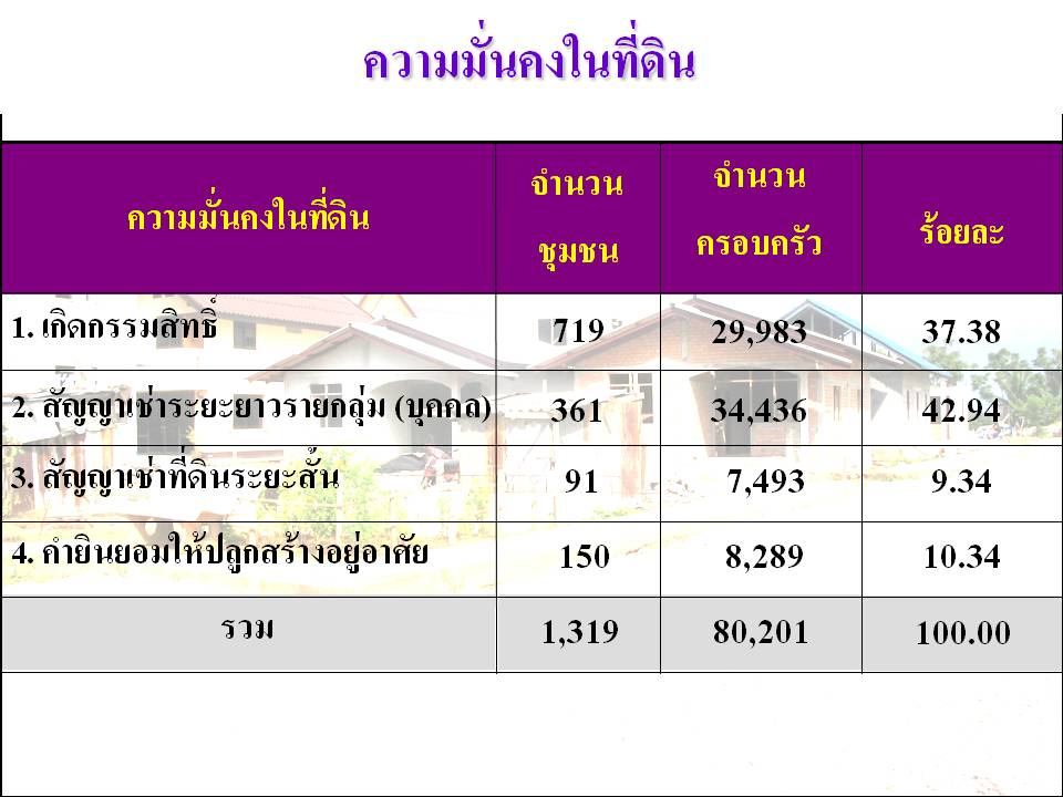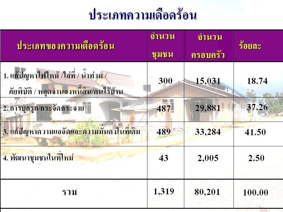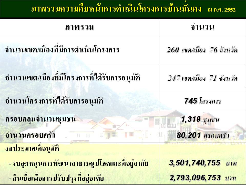 ภาพรวมความคืบหน้าการดำเนินโครงการบ้านมั่นคง ณ ก.ค. 2552
