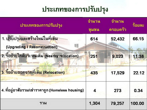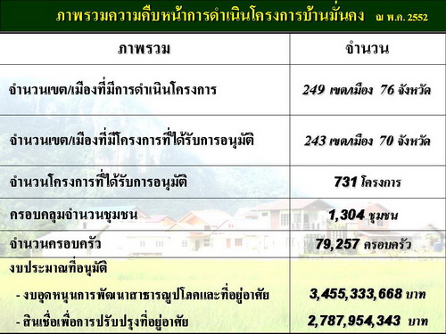 ภาพรวมความคืบหน้าการดำเนินโครงการบ้านมั่นคง ณ พ.ค. 2552