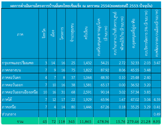 รายงานความคืบหน้าการอนุมัติโครงการบ้านมั่นคง ณ เดือน มกรคม 2554