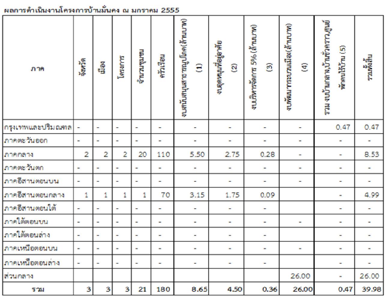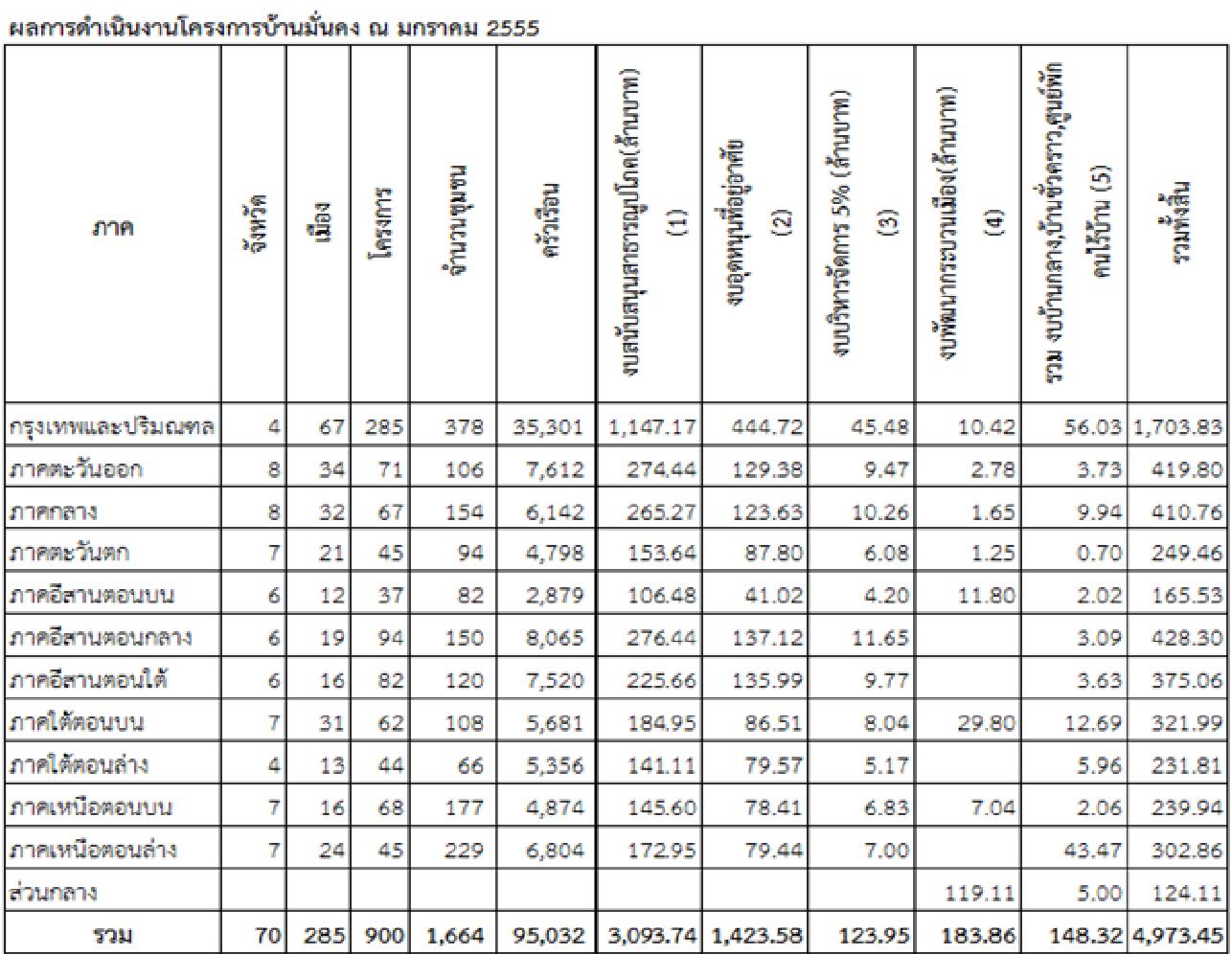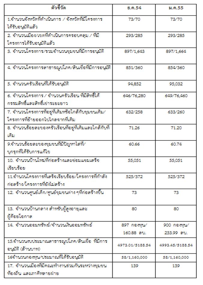 ความคืบหน้าโครงการบ้านมั่นคง เดือน มกราคม 2555