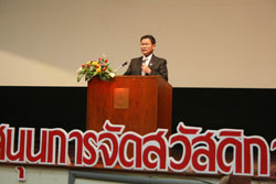 นายอิสสระ สมชัย รัฐมนตรีว่าการกระทรวงการพัฒนาสังคมและความมั่นคงของมนุษย์ มอบนโยบายในการประชุมสร้างความเข้าใจการดำเนินงานโครงการสนับสนุนการจัดสวัสดิการชุมชน เมื่อวันศุกร์ที่ ๒๐ พฤศจิกายน ๒๕๕๒ ณ ห้องประชุมวิทยทัศน์ มหาวิทยาลัยสุโขทัยธรรมาธิราช จ.นนทบุรี โดยมีผู้แทนกองทุนสวัสดิการชุมชน พัฒนาสังคมและความมั่นคงของมนุษย์จังหวัด คณะอนุกรรมการสนับสนุนสวัสดิการชุมชน และเจ้าหน้าที่สถาบันพัฒนาองค์กรชุมชน เข้าร่วมประชุมประมาณ ๔๕๐คน