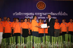 วันที่ 11 มกราคม 2553 ณ ตึกสันติไมตรี ทำเนียบรัฐบาล คณะกรรมการเสริมสร้าวความเข้มแข็งของชุมชนแห่งชาติ ร่วมกับกระทรวงมหาดไทย กระทรวงการพัฒนาสังคมและความมั่นคงของมนุษย์ และสถาบันพัฒนาองค์กรชุมชน จัดงาน “สวัสดิการชุมชนรากฐานการพัฒนาที่ยั่งยืน” เพื่อมอบเงินสมทบกองทุนสวัสดิการชุมชนจำนวน 375 กองทุน จาก 66 จังหวัด วงเงิน 112.48 ล้านบาท จากนายอภิสิทธิ์ เวชชาชีวะ นายกรัฐมนตรี ซึ่งมีผู้แทนหน่วยงานและองค์กรสวัสดิการชุมชนร่วมงานประมาณ 1,000 คน