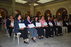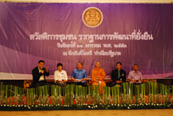 คุณหญิงสุพัตรา มาศดิตถ์ ประธานคณะกรรมการเสริมสร้างคววมเข้มแข็งของชุมชนแห่งชาติ กล่าวว่าสวัสดิการชุมชนเป็นรากฐานของการพัฒนาชุมชนจากฐานราก และในวันนี้มีการมอบเงินสมทบกองทุนของสวัสดิการชุมชนถือเป็นวันประวัติศาสตร์ของภาคประชาชน เพราะเรื่องสวัสดิการชุมชนเป็นเรื่องที่ประชาชนทำมาก่อนแล้วจึงชวนรัฐบาลมาร่วมทำงาน ที่จริงทั้งประเทศมีการจัดตั้งกองทุนสวัสดิการแล้วถึง 3,174 แห่ง (กองทุน) แต่เกณฑ์การคัดเลือกองค์กรเพื่อให้มีการสมทบจากรัฐบาลในรอบแรกใช้เกณฑ์การคัดเลือก 5 ข้อคือ หนึ่งต้องจัดตั้งมาไม่น้อยกว่าหนึ่งปีและได้รับการรับรองจากคณะกรรมการขับเคลื่อนระดับจังหวัด สองมีเงินออมจากสมาชิกและได้รับการสมทบจากองค์กรปกครองส่วนท้องถิ่น สามมีสมาชิกที่ครอบคลุมคนอย่างหลากหลายในชุมชนและหลากหลายผู้เข้าร่วมในพื้นที่ตำบล สี่มีระบบการบริหารจัดการกองทุนที่ชัดเจน และห้ามีการจัดสวัสดิการชุมชนและเชื่อมโยงกับงานพัฒนาด้านอื่นๆในท้องถิ่น นอกจากนี้คณะอนุกรรมการที่เป็นผู้นำชุมชนได้เสนอหลักเกณฑ์เพิ่มเติมอีก สามประการสำหรับ 375 กองทุนที่มารับการสมทบในวันนี้ เพื่อให้เป็นกองทุนต้นแบบสามารถใช้เผยแพร่ขยายผลและเป็นครูสำหรับพื้นที่อื่นๆคือ หนึ่งมีพัฒนาการที่ชัดเจนต่อเนื่อง สองเป็นสถานที่เรียนรู้ศึกษาดูงานของชุมชนหรือหน่วยงาน และสามเป็นพื้นที่ๆมีการศึกษาวิจัย มีการเชื่อมโยงเป็นเครือข่ายในภาคและข้ามภาค คุณหญิงสุพัตรากล่าวต่อว่า การสมทบกองทุนในวันนี้เรื่องเงินไม่ใช่เรื่องหลักแต่เป็นสัญลักษณ์ของความดีที่ประชาชนทำมาแล้ว และเป็นตัวอย่างของความร่วมมือที่ดี
