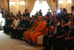 นายอภิสิทธิ์ เวชชาชีวะ นายกรัฐมนตรี ได้มอบเงินสมทบกองทุนให้กับผู้นำองค์กรสวัสดิการชุมชนและให้กำลังใจประชาชนที่เดินทางมาถึงจุดนี้ เพราะรัฐบาลอยากเห็นแนวทางที่ประชาชนมีหลักประกัน เพราะที่ผ่านมาคนที่มีหลักประกันคือคนที่อยู่ในภาคราชการ ภาคเอกชนและประกันสังคม ซึ่งคนส่วนใหญ่ไม่ได้รับการดูแล นายกรัฐมนตรีกล่าวต่อว่าการที่รัฐบาลจะจัดสวัสดิการเพื่อดูแลคนทั้งหมดเป็นเรื่องที่ยากมาก และในประเทศไทยถือว่าเรามีรายได้อยู่ในระดับกลาง เป็นการยากที่รัฐจะเก็บภาษีจากประชาชนแล้วมาจัดสวัสดิการ ในหลายประเทศมีการเก็บภาษีที่สูงเพื่อมาจัดสวัสดิการ ซึ่งทำได้ไม่ยั่งยืน ในประเทศเราการต่อยอดความสำเร็จของประชาชนที่ทำสวัสดิการมาหลายปีน่าจะเป็นทางออกที่ดีที่สุด ซึ่งการทำงานทั้งหมดที่ผ่านมาเป็นกระบวนการของประชาชน และการมีส่วนร่วของภาครัฐจะเพิ่มความมั่นคงให้กับประชาชน ท่านที่ได้รับเงินสมทบในวันนี้ถือว่าเป็นพื้นที่ต้นแบบ ซึ่งจะต้องช่วยขยายผลไปยังพื้นที่อื่นๆ และยึดหลักการสำคัญของการให้อย่างมีคุณค่ารับอย่างมีศักดิ์ศรี รวมทั้งการบริหารจัดการที่ดีเพื่อประโยชน์ของสมาชิกและส่วนรวม นายกรัฐมนตรีกล่าวต่อว่า อยากเห็นการพัฒนาในด้านอื่นๆที่เป็นเป็นความร่วมมือของชุมชนท้องถิ่น เช่นการส่งเสริมด้านอาชีพ การจัดการทรัพยากรธรรมชาติและสิ่งแวดล้อม การจัดการภัญพิบัติต่างๆ ซึ่งรัฐบาลและคณะกรรมการเสริมสร้างความเข้มแข็งของชุมชนแห่งชาติพร้อมที่จะสนับสนุน