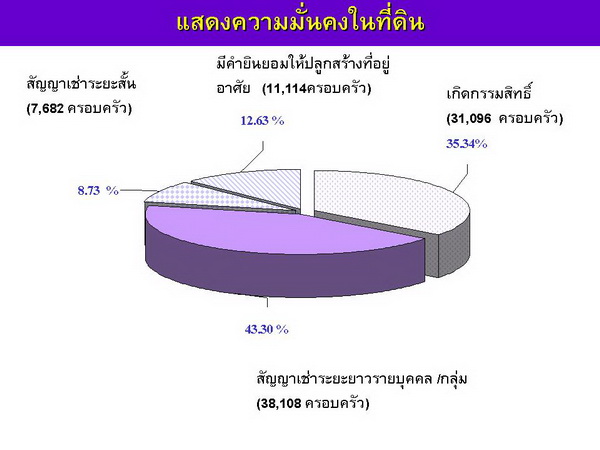 สินเชื่อโครงการบ้านมั่นคง ในแผนปฏิบัติการไทยเข้มแข็ง ๒๕๕๕คือเครื่องมือสำคัญในการสร้างความมั่นคงในที่ดินและที่อยู่อาศัยของคนจนเมืองซึ่งจะนำไปสู่การมีเมืองที่ปราศจากสลัม (city without slums) ในที่สุด