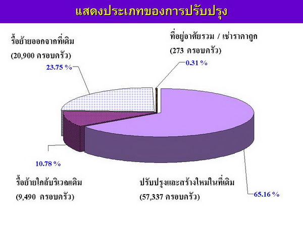 ส่วนในด้านการขับเคลื่อนงานแก้ปัญหาที่อยู่อาศัย เราต้องการให้คนที่เดือดร้อนอีกกว่า ๖,๐๐๐ ชุมชน เกือบ ๘๐๐,๐๐๐ ครัวเรือน มีความมั่นคงในเรื่องที่อยู่อาศัย ขบวนชุมชนที่ได้รับโอกาสก่อนเช่นพวกเราจึงได้ผลักดันเชิงนโยบาย เช่น เรื่อง พ.ร.บ.ควบคุมอาคารหรือกองทุนพัฒนาที่อยู่อาศัยที่รัฐบาลต้องสนับสนุนอย่างต่อเนื่อง (สินเชื่อที่อยู่อาศัยดอกเบี้ยต่ำ) เพราะคนจนไม่สามารถเข้าถึงสถาบันการเงินในระบบได้