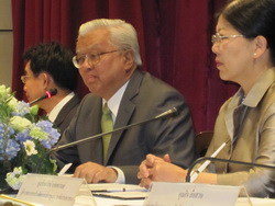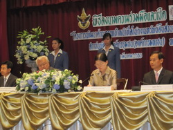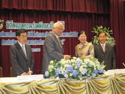 โดยในช่วงเช้าก่อนการทำบันทึกความร่วมมือได้มีการบรรยายพิเศษ “ การพัฒนาคน เป้าหมายสำคัญของการพัฒนาชุมชน” โดย นายสุรินทร์ กิจนิตย์ชีว์ โดย นายสุรินทร์ ได้กล่าวถึงเป้าหมายของการพัฒนาชุมชนว่า การทำงานพัฒนามีเป้าหมายเพื่อให้ชุมชนมีการเปลี่ยนแปลงในทางที่ดีขึ้น จึงต้องทำเชิงยุทธศาสตร์ที่หวังผลการเปลี่ยนแปลง แต่วิธีการทำงานอย่าเอาเราเป็นตัวตั้ง ต้องเอาชุมชนหรือพื้นที่เป็นตัวตั้งและนักพัฒนาต้องมีบทบาทในการพี่เลี้ยง ซึ่งต้องใช้ ๔ ยุทธศาสตร์ในการทำงานคือยุทธศาสตร์สร้างปัญญาที่เกิดจากการแลกเปลี่ยน ข้อมูล การแลกเปลี่ยนความรู้แทนการสั่งสอน ยุทธศาสตร์ที่สองเป็นเรื่องนโยบายที่ทำให้เรื่องของชุมชนเป็นประเด็นสาธารณะ เช่นการแก้ปัญหาหนี้สินของชุมชนที่คนในชุมชนต้องเห็นปัญหาร่วมกัน ยุทธศาสตร์ที่สามเป็นการสร้างพลังของชุมชนที่มีการเชื่อมโยงเป็นเครือข่าย