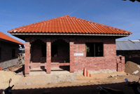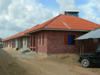 ส่วนการสร้างบ้านนั้น ได้มีหน่วยงานต่างๆ บริจาคช่วยเหลือ เช่น มูลนิธิโมเสสจากอิตาลี สนับสนุนจำนวน 12 หลังๆ ละ 210,000 บาท และโสสะมูลนิธิ สนับสนุน 38 หลังๆ ละ 210,000 บาท เป็นบ้านเดี่ยวชั้นเดียว ขนาด 7x11 ตารางเมตร ก่ออิฐบล็อคประสาน ไม่มีเสา ซึ่งชาวบ้านช่วยกันออกแบบ วางผัง คัดเลือกวัสดุ แบ่งกลุ่มกันรับผิดชอบงาน ซึ่งชาวบ้านใช้วิธีการจ้างแรงงานก่อสร้างภายในกลุ่ม เพื่อสนับสนุนให้สมาชิกมีงานทำระหว่างรอการก่อสร้างบ้าน