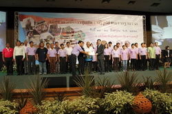 โอกาสนี้นายกรัฐมนตรีได้มอบเงินสมทบกองทุนสวัสดิการชุมชนจำนวน ๘๒๐ กองทุน ให้กับผู้แทนองค์กรสวัสดิการชุมชน และกล่าวแสดงความยินดีกับผู้นำชุมชนที่ได้ขับเคลื่อนงานสวัสดิการชุมชนด้วยความเข้มแข็ง มีความมั่นคงในหลักการสำคัญของสวัสดิการชุมชนที่เป็นการให้อย่างมีคุณค่าและรับอย่างมีศักดิ์ศรี และเห็นด้วยกับข้อเสนอของชุมชนในทุกเรื่อง และกล่าวว่ารัฐบาลมีนโยบายสนับสนุนสวัสดิการชุมชนอย่างต่อเนื่องโดยในปี ๒๕๕๔ มีการตั้งงบประมาณสนับสนุนกองทุนอีก ๘๐๐ ล้านบาท ส่วนในข้อเสนอของชุมชนในระบบงบประมาณที่เกี่ยวข้องกับสวัสดิการ โดยให้สนับสนุนไปที่ชุมชนโดยตรงนั้น จะมีการพิจารณาในข้อกฎหมายและกฏระเบียบ ซึ่งในหลักการเห็นด้วยกับการกระจายอำนาจไปที่ชุมชนท้องถิ่น โดยมีความเห็นว่ากองทุนสวัสดิการชุมชน ควรมีการเชื่อมโยงกับหน่วยงานและงานพัฒนาอื่นๆที่ดำเนินการอยู่ในชุมชน เช่นเรื่องโฉนดชุมชน นายกรัฐมนตรีกล่าวต่อว่าคุณค่าของสวัสดิการชุมชนอยู่ที่การเอาพลังของชุมชน เอาทุนชุมชน มาเกื้อกูลดูแลกัน มาสร้างสังคมที่ดีงามร่วมกัน ซึ่งจะเป็นเป้าหมายสุดท้ายของการปฏิรูปประเทศไทย นายกรัฐมนตรีกล่าว