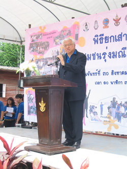 นายจิรายุ อิศรางกูร ณ อยุธยา ผู้อำนวยการสำนักงานทรัพย์สินส่วนพระมหากษัตริย์ กล่าวว่า สำนักงานทรัพย์สินฯ เห็นเป็นโอกาสสำคัญในการพัฒนาและเติมเต็มคุณภาพชีวิตที่ดีให้กับชาวชุมชนบนพื้นที่ของสำนักงานทรัพย์สินฯ โดยร่วมกับ พอช. สำนักงานเขตวังทองหลาง ชาวชุมชน และภาคีพัฒนาต่างๆ เพื่อร่วมกันปรับปรุงพัฒนาที่อยู่อาศัย ระบบสาธารณูปโภคพื้นฐาน สภาพสังคมและสิ่งแวดล้อมให้ได้มาตรฐาน ซึ่งบ้านมั่นคงชุมชนรุ่งมณีพัฒนา เป็นการก่อสร้างที่อยู่อาศัยใหม่ในที่ดินเดิม และการปรับปรุงที่อยู่อาศัยเดิมให้มีความมั่นคง รวม ๔๑๒ หลังคาเรือน ประชากรประมาณ ๑,๕๐๐ คน ในพื้นที่ ๓๑ ไร่ ๒ งาน ๑๘ ตารางวา โดยชุมชนเช่าที่ดินของสำนักงานทรัพย์สินฯ ในอัตราตารางวาละ ๑๕ บาทต่อปี สัญญาเช่าระยะยาว ๓๐ ปี