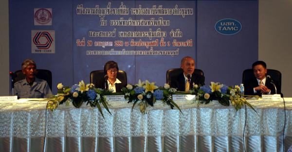 นายสมเจตน์ กล่าวว่า บสท.มีความเข้าใจปัญหาความไม่มั่นคงในที่อยู่อาศัยของคนยากจนในชุมชนแออัด และบสท.มีความห่วงใยและเห็นใจความลำบากของคนจนผู้เดือดร้อน จึงประสานงานกับ พอช. อย่างต่อเนื่อง เพื่อมุ่งมั่นแก้ไขปัญหาการให้ความช่วยเหลือแก่ประชาชน ที่อาศัยในชุมชนแออัด แตกต่างจากการช่วยเหลือลูกหนี้ที่เดือดร้อนจากปัญหาหนี้สิน เพราะเป็นการช่วยเหลือผู้เดือดร้อนที่ยิ่งใหญ่กว่า ให้ความช่วยเหลือโดยตรงต่อผู้มีรายได้น้อยและด้อยโอกาสในสังคม ให้ได้มีบ้าน และโอกาสสร้างความมั่นคงและความเข้มแข็งให้กับชีวิตและสถาบันครอบครัว