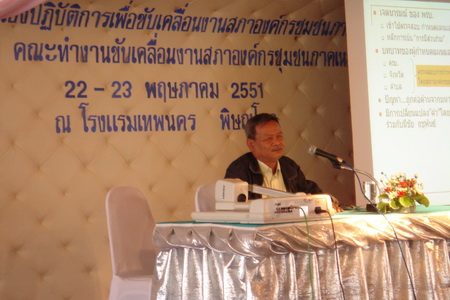 ภาคเหนือ/วันที่ 22-23 พฤษภาคม 2551 สถาบันพัฒนาองค์กรชุมชน สำนักงานปฏิบัติการภาคเหนือ ได้จัดเวที“อบรมเชิงปฏิบัติการเสริมสร้างขีดความสามารถแกนนำองค์กรชุมชนเพื่อขับเคลื่อนงานสภาองค์กรชุมชนภาคเหนือ” ณ โรงแรมเทพนคร อำเภอเมือง จังหวัดพิษณุโลก โดยมีวัตถุประสงค์เพื่อเพื่อสร้างความรู้ความเข้าใจให้กับแกนนำองค์กรชุมชน และภาคีพัฒนาเกี่ยวกับสภาองค์กรชุมชน เพื่อพัฒนาศักยภาพแกนนำในการขับเคลื่อนงานสภาองค์กรชุมชนในระดับจังหวัด และเป็นเวทีวางแผนการขับเคลื่อนงานสภาองค์กรชุมชนในระดับจังหวัด และระดับภาค ซึ่งมีผู้เข้าร่วมหลากหลายองค์กรทั้งภาคประชาสังคม ขบวนองค์กรชุมชน และหน่วยงานองค์กรปกครองส่วนท้องถิ่น ร่วมทั้งหมด 82 คน จาก 13 จังหวัด