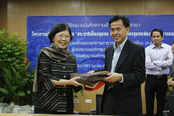 นางทิพย์รัตน์ นพลดารมย์ ผู้อำนวยการ พอช. กล่าวว่าเราคาดหวังว่าสิ่งที่ประชาชนได้ลงมือทำแทนการร้องขอจะถูกสื่อสารออกไปจะมีส่วนช่วยในการกระตุ้นเพื่อลดความเหลื่อมล้ำการสื่อสารต้องสร้างสร้างแรงบันดาลใจเพื่อให้คนส่วนใหญ่อยู่ได้การความร่วมมือของสามฝ่ายในวันนี้เป็นการเสียบปลั๊กเพื่อเพิ่มพลังให้แก่กันโดยชุมชนและพอช.เป็นภาคปฏิบัติการ ส่วนส.ส.ท.เป็นฝ่ายสื่อสาร |
