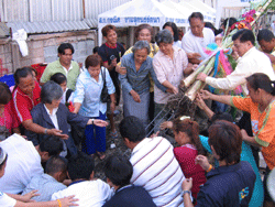 บ้านมั่นคง : ผอ.พอช. เป็นประธานในพิธี ขึ้นเสาเอกบ้านมั่นคงชุมชนตลาดปีนัง เขตคลองเตย หลังเกิดเหตุเพลิงไหม้เมื่อต้นปีที่ผ่านมา