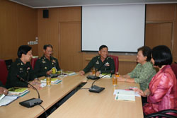 พลโท เลิศพันธ์ วัฒนจินดา หัวหน้าคณะทำงานประสานการจัดการที่ดินของกองทัพบก กล่าวว่า กองทัพบกมีที่ดินที่จะต้องปกครอง ดูแล และใช้ประโยชน์เป็นจำนวนมากกระจายอยู่ทั่วประเทศ จึงได้ตั้งคณะทำงานประสานการจัดการที่ดิน ทำหน้าที่ ติดต่อ ประสานกับส่วนราชการ รัฐวิสาหกิจ และองค์กรเอกชนที่เกี่ยวข้อง เพื่อเป็นการพัฒนาการใช้ประโยชน์ในที่ดินของกองทัพบกเป็นไปอย่างมีประสิทธิภาพ จึงได้เดินทางมาศึกษาดูงานระบบสารสนเทศภูมิศาสตร์ (GIS) กับ พอช. และนำไปพิจารณาเป็นแนวทางในการจัดการการแก้ไขปัญหาที่ดินของกองทัพบกต่อไป