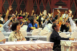 เมื่อวันที่ 26-28 พฤษภาคมที่ผ่านมา ตัวแทนเครือข่ายอาสาสมัครพิทักษ์ทรัพยากรและและสิ่งแวดล้อมหมู่บ้าน (ทสม.) เครือข่ายป่าชุมชน เครือข่ายหน่วยงานวิจัย ชุมชนเมืองและกองทุนสวัสดิการชุมชน ผู้บริหารองค์กรปกครองส่วนท้องถิ่น หน่วยงานราชการสังกัดกระทรวงทรัพยากรและสิ่งแวดล้อม นักวิชาการ องค์กรเอกชน ในเขตพื้นที่จังหวัดเชียงใหม่ กว่า 700 คน เข้าร่วมการประชุมในหัวข้อ “สมัชชาองค์กรชุมชนเชียงใหม่ ร่วมสร้างสรรค์ สิ่งแวดล้อม รักษาสมดุลการพัฒนา 2552” ภายใต้การสนับสนุนของสถาบันพัฒนาองค์กรชุมชน (พอช.) ณ โรงแรมเชียงใหม่ภูคำ จ.เชียงใหม่