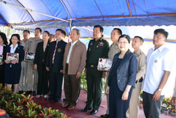 โดยพล.อ.สุรยุทธ์ จุลานนท์ องคมนตรี พร้อมคณะ ได้เดินตรวจเยี่ยมการแก้ปัญหาที่อยู่อาศัยกรณีโครงการพัฒนาสังคมและคุณภาพชีวิตชุมชนเลียบแม่น้ำมูล พร้อมพบปะและทักทายคณะผู้บริหาร ข้าราชการ ประชาชน อย่างเป็นกันเอง ก่อนมอบของที่ระลึกให้ผู้สนับสนุนโครงการฯ ได้แก่จังหวัดอุบลราชธานี องค์การบริหารส่วนจังหวัดอุบลราชธานี เทศบาลนครอุบลราชธานี เหล่ากาชาดจ.อุบลราชธานี สถาบันอาศรมศิลป์ โรงงานยาสูบกระทรวงการคลัง บริษัทโตโยต้าดีเยี่ยมจำกัด พอช. พมจ.อุบลราชธานี กองทัพบก ชุมชน ซึ่งให้การสนับสนุนเงินประมาณในการก่อสร้างบ้าน การพัฒนาสาธารณูปโภค การรื้อถอน ฯลฯ จากนั้นคณะได้เดินชมนิทรรศการของชุมชนเลียบแม่น้ำมูล ก่อนเข้าสักการะกราบไหว้หลักเสาคุ้ม เพื่อความเป็นสิริมงคล และปลูกต้นไม้