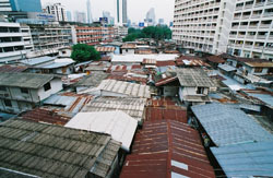 พลิกชุมชนแออัดเป็นเมืองน่าอยู่ ด้วยพลังบริษัทจิตอาสา (CSR) กระแสของบริษัทจิตอาสา หรือ Corporate Social Responsibility (CSR) กำลังเป็นที่นิยม แต่จะนำมาเป็นแหล่งเงินทุนฟื้นฟูชุมชนแออัดได้นั้น ต้องให้ผลตอบแทนที่คุ้มค่าต่อบริษัท เช่น 1) มาตรการลดภาษีให้บริษัทอสังหาริมทรัพย์ที่สนับสนุนเงินทุนฟื้นฟูชุมชน นอกจากบริษัทจะได้รับการตอบแทนจากรัฐโดยการยกเว้นหรือลดภาษีแล้ว ยังสามารถเพิ่มทั้งภาพพจน์และสภาพแวดล้อมเมืองที่น่าอยู่ให้กับโครงการได้ เป็นการสร้างมูลค่าเพิ่มและ Brand ให้กับโครงการ 2) มาตรการคิดค่าลงทุนฟื้นฟูชุมชน ผนวกในการเฉลี่ยค่าการลงทุนและจัดเก็บคืนจากเจ้าของที่ดิน ตามอัตราส่วนมูลค่าทรัพย์สินที่สูงขึ้นจากโครงการฟื้นฟูเมือง สำหรับการลงทุนฟื้นฟูเมืองรอบศูนย์คมนาคม การลงทุนจัดรูปพัฒนาที่ดินต่างๆ ที่จะทำให้ที่ดินราคาสูงขึ้นควรเพิ่มโอกาสการฟื้นฟูชุมชนแออัดไปด้วย เช่น ผังแม่บทพัฒนาย่านพาณิชยกรรมศูนย์กลางรอง รอบศูนย์คมนาคมพหลโยธิน (Bangkok CBD-2) เจ้าของที่ดินรายย่อยที่รวมแปลงที่ดินด้วยมาตรการฟื้นฟูเมืองและวิธีการจัดรูปที่ดิน จะได้สิทธิประโยชน์จากราคาที่ดินที่สูงขึ้น และยังสามารถสร้างอาคารสูงและอาคารขนาดใหญ่ได้ หากชุมชนแออัดจะต้องถูกฟื้นฟูหรือย้ายออกไปตั้งในที่ดินใหม่ ควรได้รับการสนับสนุนค่าลงทุนฟื้นฟูหรือย้ายออกจากค่าการลงทุนของโครงการ เป็นต้น เมื่อทุกคนเข้าใจสิทธิการอยู่อาศัยร่วมกันและได้รับประโยชน์ร่วมกัน เมืองย่อม"ไร้สลัม"