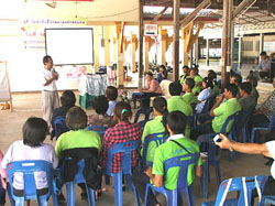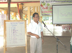 หลังจากการเปิดงาน นายประยงค์ อุปเสน หัวหน้างานพัฒนาบุคลากร พอช. และนายพิรุณ กองแปง ผู้ประสานงานกลุ่มจังหวัด ได้ร่วมแลกเปลี่ยนแนวคิด บทเรียนและวิธีการจัดทำเป้าหมาย ตัวชี้วัดการพัฒนาชุมชนท้องถิ่น กับผู้เข้าร่วมประชุม