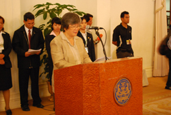 นายอภิสิทธิ์ เวชชาชีวะ นายกรัฐมนตรีกล่าวว่า รัฐบาลให้ความสำคัญกับการพัฒนาคนเป็นศูนย์กลาง โดยการสร้างความร่วมมือกับทุกฝ่าย ต้องขอบคุณชุมชนที่เป็นกำลังหลักในการทำงานและท้องถิ่นซึ่งได้สนับสนุนการทำงานมาอย่างต่อเนื่อง มีการเผยแพร่การพัฒนาและการแก้ปัญหา ที่ผ่านมารัฐบาลรัฐบาลได้ส่งเสริมการมีส่วนร่วมของชุมชน เช่นการตั้งคณะกรรมการเสริมสร้างความเข้มแข็งของชุมชนแห่งชาติ เพื่อรับฟังความเห็นของผู้อาวุโส ผู้นำชุมชน ผู้มีประสบการณ์ในด้านต่างๆ