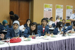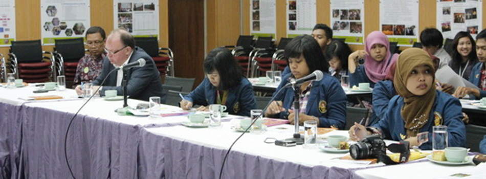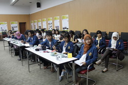Professor Jawoto Setyono ศาสตราจารย์ประจำภาควิชาการวางแผนภาคและเมือง นำคณะนักศึกษาระดับปริญญาตรี ชั้นปีที่ ๓ มหาวิทยาลัย Diponegoro ประเทศอินโดนีเซีย รวมทั้งคณาจารย์และนักศึกษาจากคณะสถาปัตยกรรมศาสตร์และการผังเมือง มหาวิทยาลัยธรรมศาสตร์ ประมาณ ๕๕ คน เข้าเยี่ยมชมและรับฟังบรรยายสรุปเกี่ยวกับโครงการบ้านมั่นคง ที่ห้องประชุมชั้น ๑ สถาบันพัฒนาองค์กรชุมชน เมื่อวันที่ ๒๒ พฤศจิกายน ๒๕๕๓