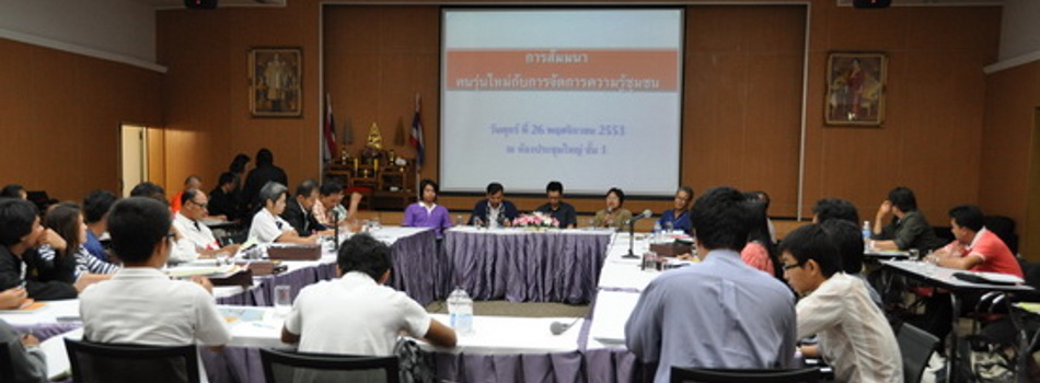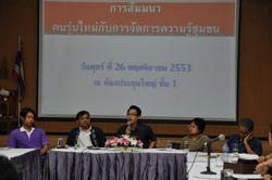 นางสาวพรรณทิพย์ เพชรมาก ผู้ช่วยผู้อำนวยการสถาบันพัฒนาองค์กรชุมชน(พอช.) เปิดเผยว่า สถาบันพัฒนาองค์กรชุมชนได้จัดสัมมนาคนรุ่นใหม่กับการจัดการความรู้ของชุมชน เพื่อสร้างการเรียนรู้ เชื่อมโยงเครือข่าย และพัฒนาโครงการให้กับกลุ่มผู้ขอรับทุนการจัดการความรู้งานพัฒนาโดยคนรุ่นใหม่ เมื่อวันที่ 26 พฤศจิกายน 2553 โดยมีการเสวนา”บทเรียนการจัดการความรู้จากการปฏิบัติ เพื่อการพัฒนาชุมชนท้องถิ่น โดยคนรุ่นใหม่” ซึ่งผู้ร่วมเสวนาประกอบด้วย ผศ.เอี่ยม ทองดี สถาบันวิจัยภาษาและวัฒนธรรมเอเชีย มหาวิทยาลัยมหิดล ผศ.ดร.ชูพักตร์ สุทธิสา คณะมนุษยศาสตร์และสังคมศาสตร์ มหาวิทยาลัยมหาสารคาม นายวิกรม เสือดี คนรุ่นใหม่จากจังหวัดสมุทรสงคราม และนายศิลป์ชัย นามจันทร์ ตัวแทนบัณฑิตคืนถิ่น โดยมีคณาจารย์ นักวิชาการ และกลุ่มคนรุ่นใหม่เข้าร่วมสัมมนาประมาณ ๕๐ คน