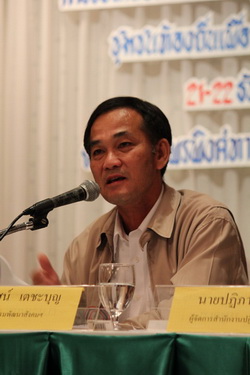 นายวิทัศน์ เตชะบุญ รองอธิบดีกรมพัฒนาสังคมและความมั่นคงของมนุษย์ กล่าวว่า สิ่งที่ชุมชนสร้างความร่วมมือจัดสวัสดิการชุมชน ตลอดช่วง ๖-๗ ปีที่ผ่านมานับเป็นนวัตกรรมของการจัดการตนเองที่สำคัญ ซึ่งระยะต่อไปต้องขยายทั้งเชิงคุณภาพและปริมาณ โดยชุมชนต้องมีความเข้าใจเรื่องสวัสดิการชุมชนอย่างแท้จริง ไม่ยึดตัวเงินเป็นเป้าหมาย แต่ทำให้เกิดความร่วมมือกันในการจัดการตนเองของชุมชนนั้นๆ หนุนเสริมให้สิ่งที่รัฐบาลตั้งเป้าหมายจะสร้างสังคมสวัสดิการในปี พ.ศ.๒๕๕๙ เกิดขึ้นได้จริง ในส่วนกรมฯ นั้น มีแนวทางที่จะจัดกระบวนให้ทีมของพม. ในแต่ละจังหวัด เข้ามาเป็นกำลังสำคัญหนุนเสริม ทั้งกำลังคน งบประมาณ และงานวิชาการ โดยทำงานกันแบบบูรณาการ