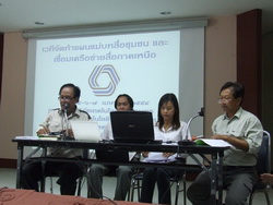 นายประทีป บุญหมั้น คณะอนุกรรมการภาคเหนือ กล่าวว่า คณะทำงานขบวนสื่อชุมชนภาคเหนือ ได้กำหนดยุทธศาสตร์และแผนงานระยะ๓ปี (๒๕๕๔-๒๕๕๖) ซึ่งได้วางไว้ ๔ ยุทธศาสตร์ ดังนี้ ยุทธศาสตร์ที่ ๑ ยุทธศาสตร์การประสานความร่วมมือหน่วยงานภาคีที่เกี่ยวข้องในเชิงนโยบาย ยุทธศาสตร์ที่ ๒ ยุทธศาสตร์ด้านการยกระดับการสื่อสารชุมชนที่เข้มข้นสู่นโยบายสาธารณะ ยุทธศาสตร์ที่๓ การพัฒนาศักยภาพบุคลากรเพื่อการสื่อสารชุมชน ยุทธศาสตร์ที่๔ การเชื่อมโยงขบวนสื่อชุมชนและขวนองค์กรชุมชนระดับจังหวัด ภายใต้ยุทธศาสตร์ “องค์กรชุมชนเป็นแกนหลักในการปฏิรูปสื่อและประชาสัมพันธ์” อยากจะให้ผู้ตัวแทนแต่ละจังหวัดได้คุยกันเรื่องของการใช้แผนที่แต่ละตำบลได้เสนอขึ้นมา สำหรับแผนการสนับสนุนให้เกิดสำนักข่าวประจำตำบล ที่ผู้เข้าในเวทีได้เสนอมานั้น ต่อไปงบประมาณจะลงที่ตำบลจังหวัดเป็นเพียงผู้เก็บรวบรวมข้อมูล สำนักข่าวแต่ละตำบลจะต้องเชื่อมงานทุกประเด็น เพื่อเผยแพร่ต่อสารธารณะต่อไป
