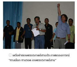เมื่อวันที่ 20 มิถุนายน 2551 ที่ผ่านมา ตัวแทนเครือข่ายเกษตรกรรมทางเลือกภาคอีสาน ได้จัดเวทีเสวนา “เปิดเส้นทางเลือกสุดท้าย ทางรอดของเกษตรกรภาคอีสาน” ณ หอประชุมคณะสัตวแพทย์ศาสตร์ มหาวิทยาลัยขอนแก่น โดยมีเครือข่ายองค์กรชุมชน 19 จังหวัดภาคอีสาน เครือข่ายทรัพยากรธรรมชาติและสิ่งแวดล้อมภาคอีสาน สมาคมป่าชุมชนภาคอีสาน มูลนิธิชีววิถี นักวิชาการ นักพัฒนาองค์กรเอกชน สถาบันพัฒนาองค์กรชุมชน (พอช.) และผู้สนใจเข้าร่วมสัมมนาครั้งนี้กว่า 500 คน เพื่อเสนอทางรอดเกษตรกรภาคอีสาน และสร้างองค์ความรู้ เชื่อมโยง ผลักดันสู่