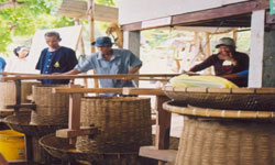"วิธีฝัดข้าวที่เห็นอยู่มันไม่ใช่เรื่องง่ายเลยนะ เราจะต้องใช้เทคนิคพอสมควรถึงจะแยกข้าวเปลือกออกจากข้าวสารได้ เพราะถ้าฝัดไม่ดีก็จะทำให้ข้าวหล่นลงพื้น ฝัดแล้วยังไม่พอต้องนำมาเก็บเปลือก ส่วนเปลือกก็นำไปสีอีกที นำมาฝัดและเก็บเปลือกอีกรอบทำอย่างนี้จนหมดถึงจะเสร็จตามขั้นตอน ป้าปิตาพูดอย่างอารมณ์ดี