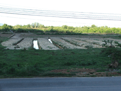 จะม๊ะบอกว่า นอกจากการปลูกผักตามหน้าบ้านหรือหลังบ้านแล้ว ต่อมาทางกลุ่มยังได้มีแนวคิดที่จะทำการปลูกผักในแปลงรวม โดยการยกร่องแปลงดินในผืนนาขึ้นใหม่ แล้วแบ่งให้กับสมาชิกดูแลคนละ 1 แปลง มีพื้นที่ความกว้าง 4 เมตร ยาว 50 เมตร รวมพื้นที่ทั้งหมด 2 ไร่ครึ่ง ซึ่งที่ดินแปลงดังกล่าวเป็นตนเอง จำนวน 1 ไร่ครึ่ง และของนางเม๊ะจา เกื้อชาติ จำนวน 1 ไร่ รวมทั้งที่ดินของสมาชิกที่ถูกทิ้งร้างไว้ โดยมีข้อตกลงในการปลูกพืชหลักๆ คือขอบแปลงปลูกกล้วยน้ำว้า ซึ่งใช้ประโยชน์ได้มากทั้งต้น ใบ หัวปลีและลูก เว้นช่วงห่าง 6 เมตรตลอดแนวร่องน้ำสลับกับข่าเหลืองและตะไคร้ ในร่องน้ำจะปล่อยปลาและเลี้ยงหอยขม ส่วนพื้นที่ที่เหลือให้สมาชิกเลือกพันธุ์พืชตามความถนัดและความชอบของตนเอง โดยทางกลุ่มมีแนวคิดที่จะจัดสร้างแท้งค์น้ำขนาดใหญ่จัดเก็บน้ำ เพื่อแก้ปัญหาขาดแคลนน้ำในช่วงหน้าแล้ง ทำให้ชาวบ้านมีน้ำกินน้ำใช้ และสามารถปลูกพืชได้ตลอดปี