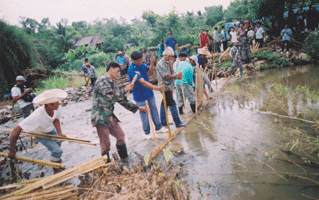 และแล้วในวันที่นัดหมายก็มาถึง พี่น้องทุกครอบครัวของหมู่บ้านป่าตึงงาม บ้านออนและหมู่บ้านใกล้เคียงซึ่งล้วนแล้วแต่ได้พึ่งพาอาศัยฝายในการผันน้ำเข้ามาสู่ไร่นา ก็มาผนึกกำลังร่วมกันสร้างฝาย จำนวน 8 ฝายขึ้นมาอีกครั้ง เพื่อจะให้แล้วเสร็จทันฤดูเพาะปลูกที่จะมาถึงในอีกไม่กี่วันข้างหน้าโดยมีทหาร พี่น้ององค์กรชุมชนจากทั่วทั้งประเทศมาร่วมแรงร่วมใจและร่วมศึกษาเรียนรู้การสร้างฝายในครั้งนี้ด้วย