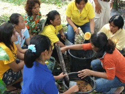 “จากสวนที่มีแต่กาแฟ ตอนนี้เปลี่ยนเป็นพืชหลายชนิด เช่น มังคุด กะท้อน ทุเรียน เงาะ สะตอ ไม่ใช้สารเคมี เพราะใช้น้ำหมักชีวภาพทำเองแทนการใช้ปุ๋ยเคมี กลุ่มยังกำหนดให้สมาชิกปลูกผักเหรียงครอบครัวละ 200 ต้น จากเดิมต้องซื้อกินทุกอย่าง ตอนนี้มีผัก สมุนไพร ไก่ ปลากิน ซื้อแต่น้ำมัน ข้าวสาร กะปิ น้ำปลา ลดค่าใช้จ่ายได้มาก” นางอุทัย กล่าว