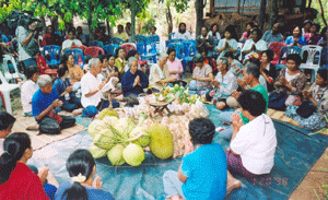 ยายสุขศรี ยังบอกอีกว่า การทำนาแต่ละปีจะทำเผื่อเอาไว้ทำบุญต่างๆด้วย อย่างเช่น งานบุญข้าวจี่ งานบุญเข้าพรรษา ออกพรรษา ฯลฯ ก็จะนิยมห่อข้าวต้มกันคนละหลายสอบกิโลเพื่อนำไปทำบุญที่วัดและแจกจ่ายให้กับญาติหรือเพื่อนบ้านเวลามาเยี่ยมเยียน ทั้งนี้ยังทำเผื่อไว้ในงานพิธีต่างๆ เช่น การบายศรีสู่ขวัญ การเรียกขวัญข้าว เพราะเชื่อว่าข้าวก็มีขวัญเหมือนกับคน และต้องการให้ขวัญข้าวกลับมาอยู่ยุ้ง หรือในการทำพิธีการขอขมาลาโทษพระแม่ธรณีที่เราได้ล่วงเกินไป ช่วยมาดูแลรักษาข้าวปลาอาหารที่ชาวบ้านปลูกไว้ อีกทั้งยังเป็นการเลี้ยงขอบคุณควายที่เป็นพาหนะของชาวนาที่ได้ช่วยไถนา ทำงานช่วยชาวนาอย่างแข็งขันจนมีข้าวให้กิน
