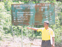 “ผมไม่รู้หรอกว่าหลังจากฟื้นป่ามาแล้ว ป่าให้สวัสดิการอย่างไร รู้แต่ว่า ผมมีอาหารการกินที่สมบูรณ์ขึ้น และมีรายได้จากป่ามากมายในแต่ละปี อย่างปี่นี้ผมไปเก็บเห็ดเก็บผักไปขายในตลาด มีรายได้กว่า 5,000 บาท/เดือน นี้ยังไม่นับรวมกับที่ไปจับกบ จับเขียด ส่วนมันก็มีเยอะ ทั้งมันน้ำ มันนก กลอย ฯลฯ อาหารจำพวกนี้มีเยอะมาก หากไม่ขี้เกียจรับรองมีเงินใช้ ส่วนเรื่องอาหารแทบทุก 3 เวลาจะได้จากป่าชุมชน”
