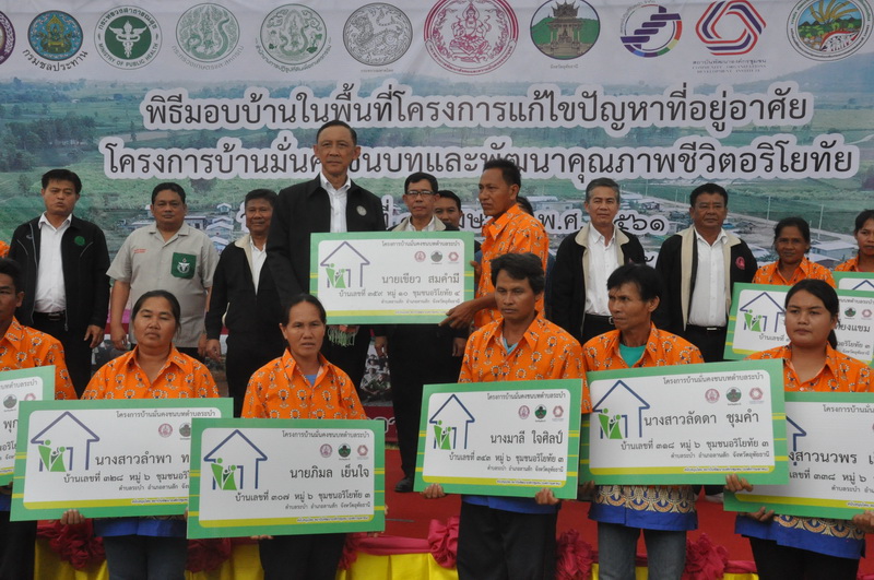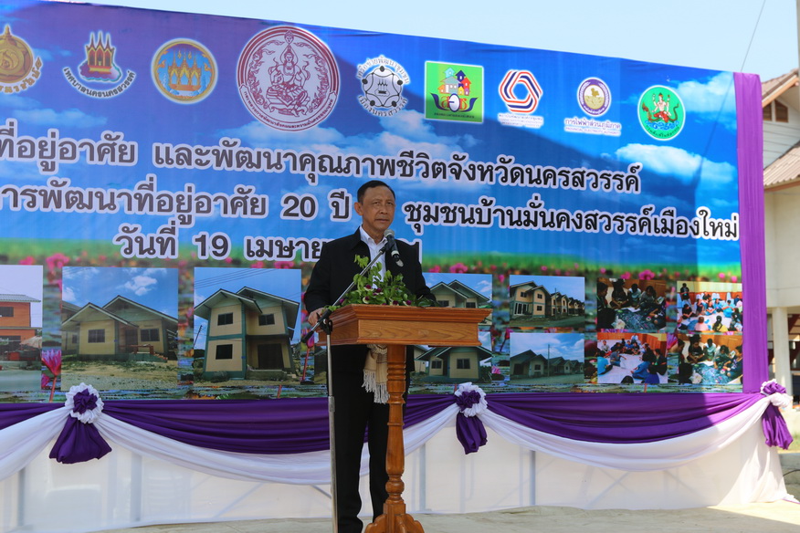 จ.นครสรรค์ / พลเอกอนันตพร รัฐมนตรีกระทรวง พม. และ ผวจ.นครสวรรค์ ร่วมพิธีมอบบ้านมั่นคงชุมชนสวรรค์เมืองใหม่จำนวน 102 ครัวเรือน และสัญญาเช่าที่ดินจากกรมธนารักษ์ให้ 2 ชุมชนในเขตเทศบาล เผยที่ผ่านมาเครือข่ายการพัฒนาที่อยู่อาศัย จ.นครสวรรค์ แก้ปัญหาไปแล้ว 7 เมือง 36 ชุมชน 3,480 ครัวเรือน และจะดำเนินการต่ออีก 3,200 ครัวเรือน พร้อมทั้งยื่นข้อเสนอผ่าน รมว.พม.ขอใช้ที่ดินรัฐในรูปแบบการเช่าระยะยาวสร้างบ้านเพื่อให้คนจนทั่วประเทศมีที่อยู่อาศัยที่มั่นคง ขณะที่หลายหน่วยงานใน จ.นครสวรรค์ร่วมลงนามในบันทึกข้อตกลงเพื่อร่วมกันแก้ไขปัญหาที่อยู่อาศัยผู้มีรายได้น้อยในจังหวัด